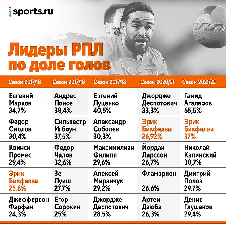В этом сезоне реализация Бикфалви сохранила «Уралу» место в РПЛ. В первой половине чемпионата он был основным нападающим в оборонительных 3-4-3, а в конце помог с атакующей трансформацией. «Урал» перешел на 4-2-3-1 с владением и короткими розыгрышами. Бикфалви играл основного форварда и стал лучшим бомбардиром весны без учета пенальти, забив 7 голов «Урала» из 15 (46,6%).