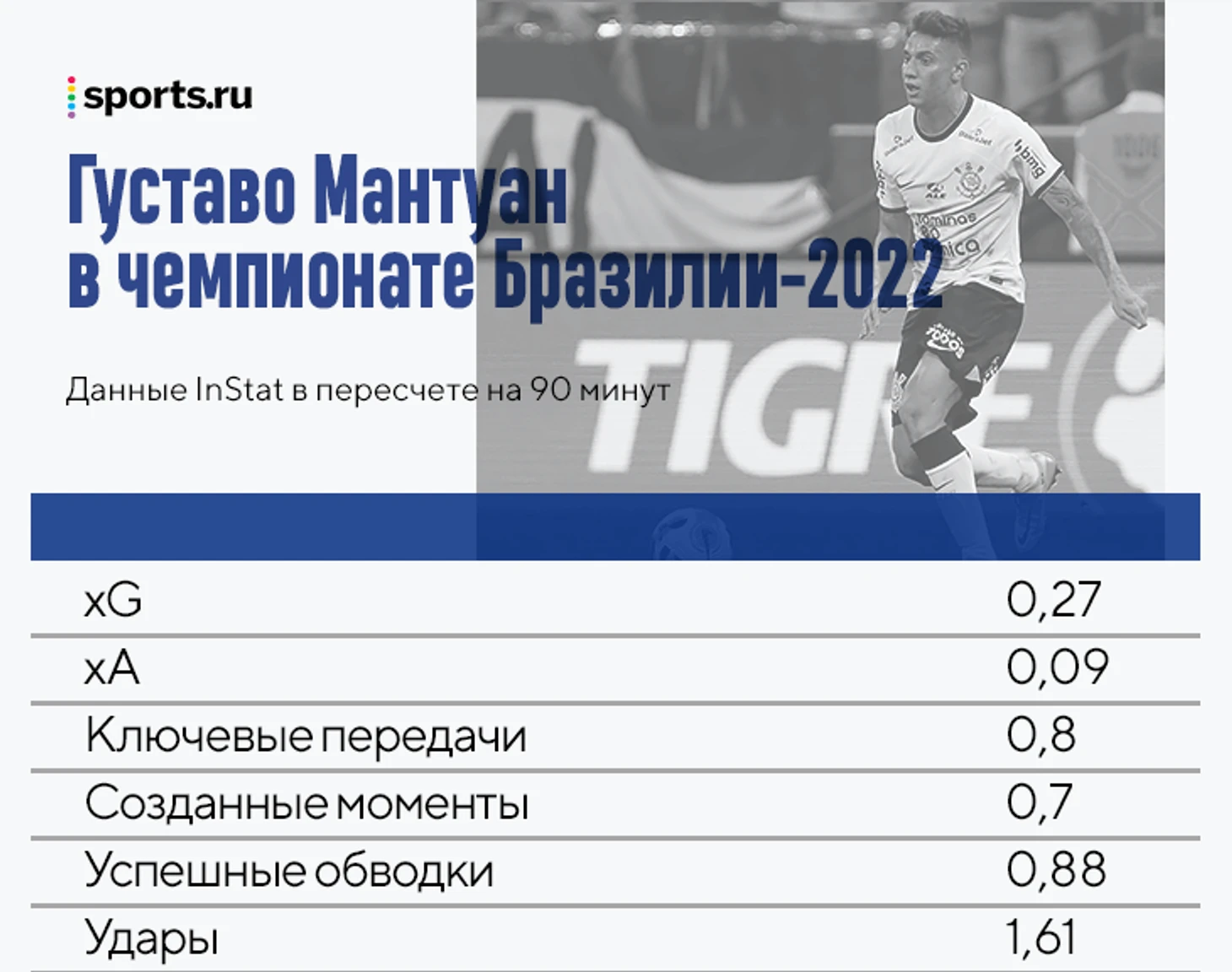 Мантуан – 21-летний правый вингер, сезон-2022 для него первый полноценный в карьере. В двух предыдущих сезонах он тоже играл за «Коринтианс», но из-за травм провел только 10 матчей.