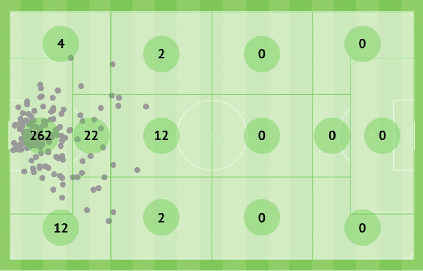Еще одно сомнение связано с отражением ударов из-за штрафной. За 175 матчей Иван пропустил 54 гола из-за пределов штрафной (Михаил Кержаков играет на близком проценте). В некоторых ситуациях можно сделать скидку (например, выходы 1-на-1 или быстрые отрывы), но он пропустил 7 голов после штрафных в ближний угол и минимум два удара точно должен был забирать. Плюс есть интересная деталь по подстраховке – Куарезма легко забирал чужие лонгболлы и неплохо ориентировался по уходящим мячам, если в штрафной было мало соперников, но «Понте» все равно регулярно пропускал после забросов и стандартов.
