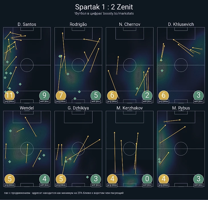 Кузяев и Вендел – тоже герои игры. Оба выбрасывались в прессинг (были не только в полузащите, но и добегали до центральных защитников), протаскивали мячи, заполняли полуфланги и много комбинировали на рывках.