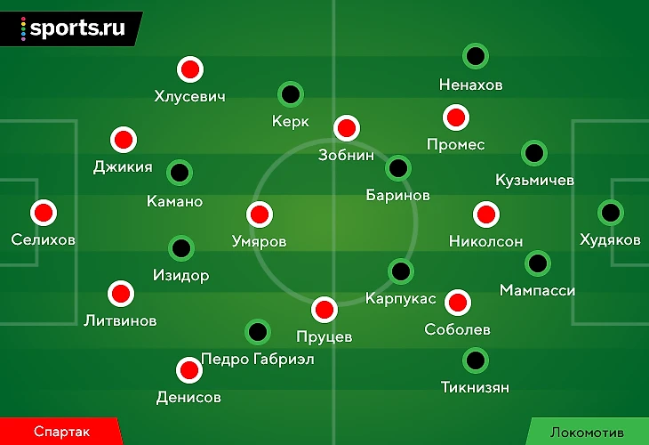На деле оказалось гораздо интереснее: «Спартак» вернулся к 4-3-3, а Соболев превратился в вингера. В других линиях тоже произошли изменения: Литвинов восстановился после повреждения и сыграл вместе с Джикией, Пруцев вышел восьмеркой, что позволило Денисову вернуться на позицию правого защитника, а Хлусевич заменил Рыбуса слева.