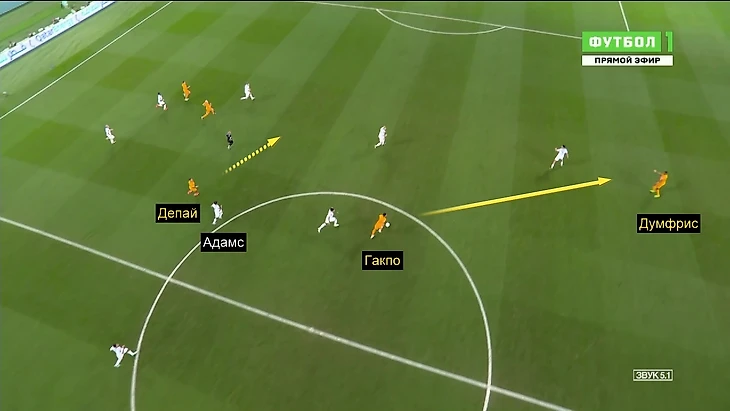 А затем потрясно отыгрался с Депаем – это оставило тройку полузащитников на одной части поля, тогда как Гакпо открывался уже на другой.