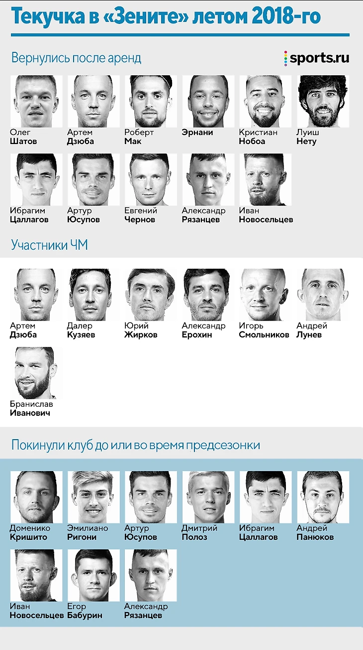Летом 2018-го Семак разбирался с наследием Мирчи Луческу и Роберто Манчини – из аренд вернулись одиннадцать игроков. К тому же большая часть основы не прошла полноценную предсезонку из-за ЧМ, несколько важных игроков вылетели из-за травм (Кокорин, Жирков, Ерохин, Маммана), а на левом фланге обороны образовалась дыра после ухода Кришито. До начала сентября 2018-го «Зенит» никого не подписывал.