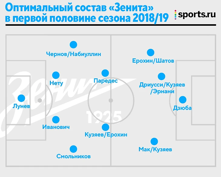 По ходу осени «Зенит» постепенно просаживался из-за усталости на фоне сборных (Кузяев и Дзюба играли больше всех) и примитива впереди. Ближе к зиме даже переходили на 3-5-2, серьезно перекручивая состав: Анюков становился третьим центральным защитником, а фланги закрывали Мак и Кузяев.