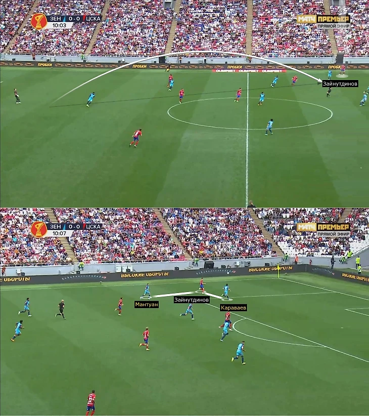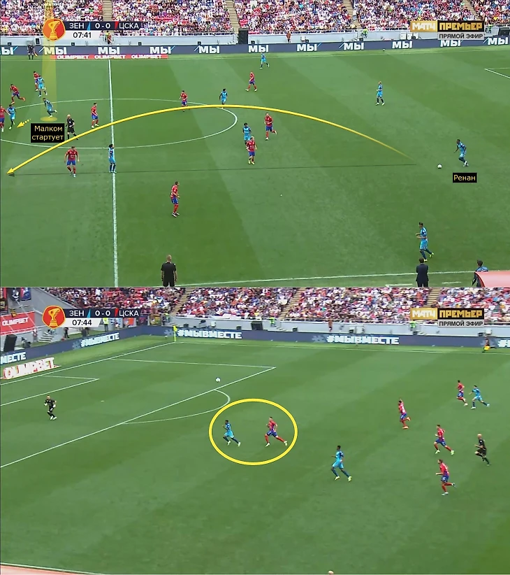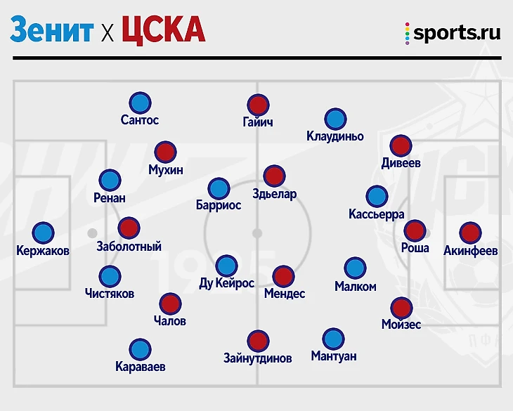 Сергей Семак подготовил новый план под ЦСКА. На сборах «Зенит» использовал 4-3-3 и 3-4-3 плюс выделил полчаса Малкому для игры в центре нападения. В Суперкубке «Зенит» неожиданно перешел на гибридные 4-4-2: Малком оказался в паре с Матео Кассьеррой, Клаудиньо и Мантуан вышли на флангах (но их роли при обороне отличались: Клауд часто играл по Игорю Дивееву, а Густаво дорабатывал за Бахтиером Зайнутдиновым), а Вильмар Барриос и Ду Кейрос заняли опорную зону.