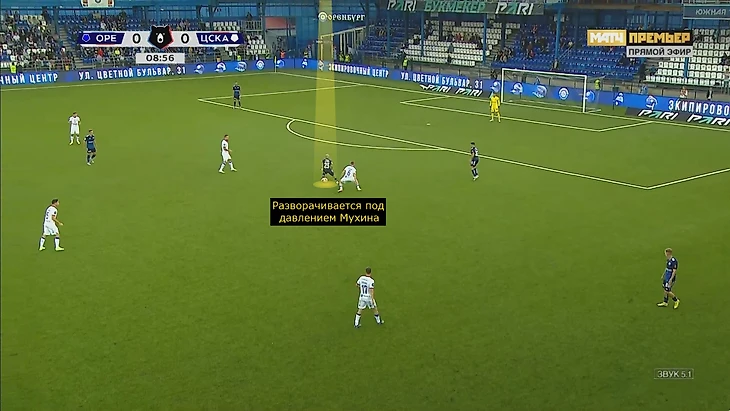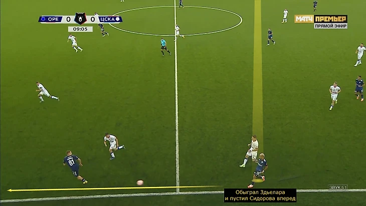Прессинг «Оренбурга» мешал ЦСКА. Команда перестраивалась на 4-4-2 через Флорентина (было еще у Ярошика), плотно разбирала фланги, крайние защитники с противоположного фланга смещались к центральным, забирала подборы после длинных передач (и снова о Вере – как же круто несколько раз сохранял мяч и отдавал партнерам). В лучшем случае ЦСКА выигрывал борьбу и возобновлял атаки со своей половины.
