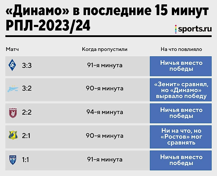 Из-за провальных финишных отрезков «Динамо» потеряло шесть очков.