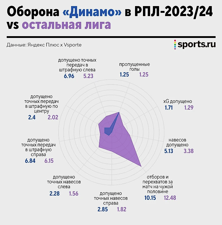 Для идеального начала не хватило качественной обороны. «Динамо» позволяет соперникам почти столько же, сколько создает: занимает 15-е место по допущенным ударам, 11-е – по качеству допущенных моментов. По ожидаемым очкам – это самая перебирающая команда лиги (15 набранных при 11,27 ожидаемых).