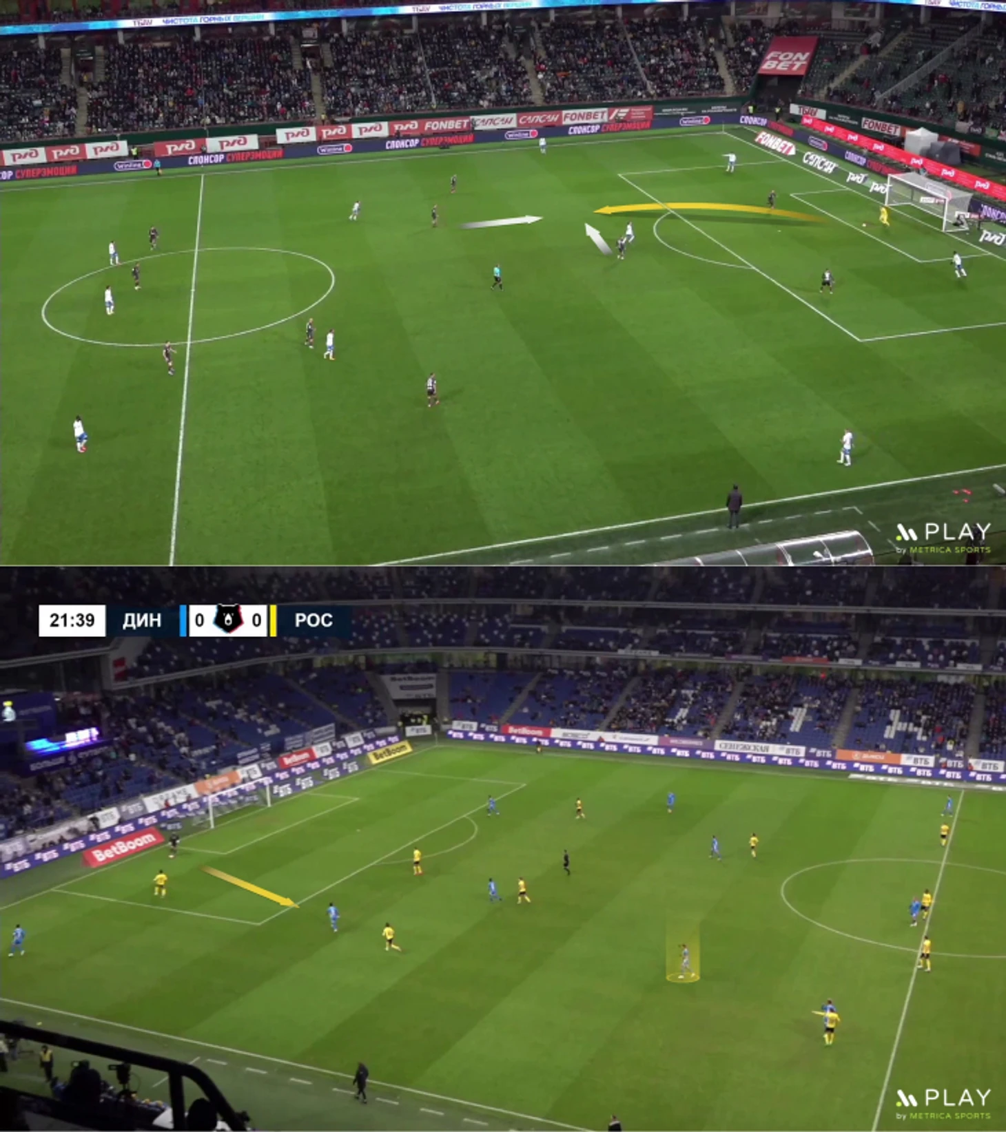 Во-первых, Шунин и Лещук мечутся при забросах и ничейных мячах в середине поля. Из-за суеты Шунин и Лещук иногда оказываются в невыгодных позициях перед выходами один на один.
