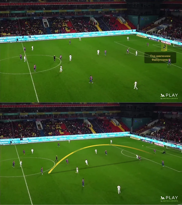 1. Лещук паникует под прессингом, когда достаточно отдать длинную передачу. В матче второго круга с ЦСКА Лещук выжидал момент для передачи на Бальбуэну, но Файзуллаев перекрывал это направление. При этом Аббос не очень быстро двигался на Лещука, но Игорь все равно суетливо переложил мяч под левую ногу и слабо вынес его на соперника. Параллельно Лещук еще и завалился на газон.