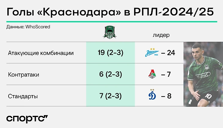 Сейчас «Краснодар» среди лучших по голам после атакующих комбинаций, контратак, и стандартов.