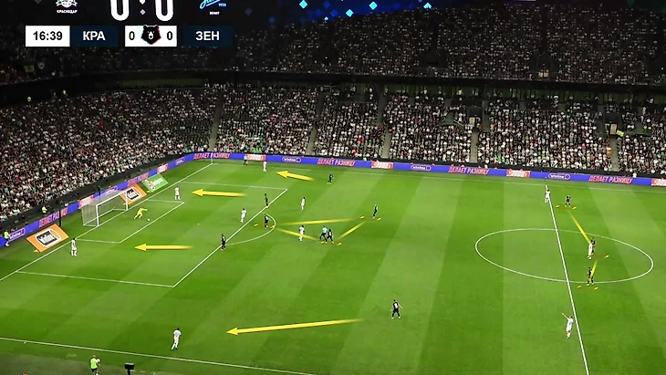 Адаптивность не только в разнообразии инструментов, но и многогранных ролях: например, инсайды меняются с крайними защитниками или открываются за спинами, а Сперцян открывается в глубине и финальной трети.