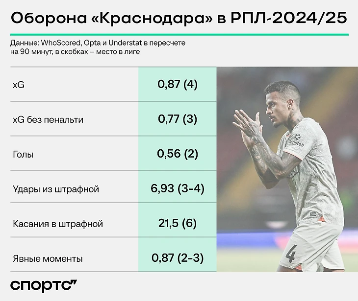 При этом у «Краснодара» надежная оборона: меньше пропустил только «Зенит», Агкацев в порядке, весенние проблемы в центре защиты и опорной решены с помощью перформансов Косты, Тормена, Петрова и Ленини.