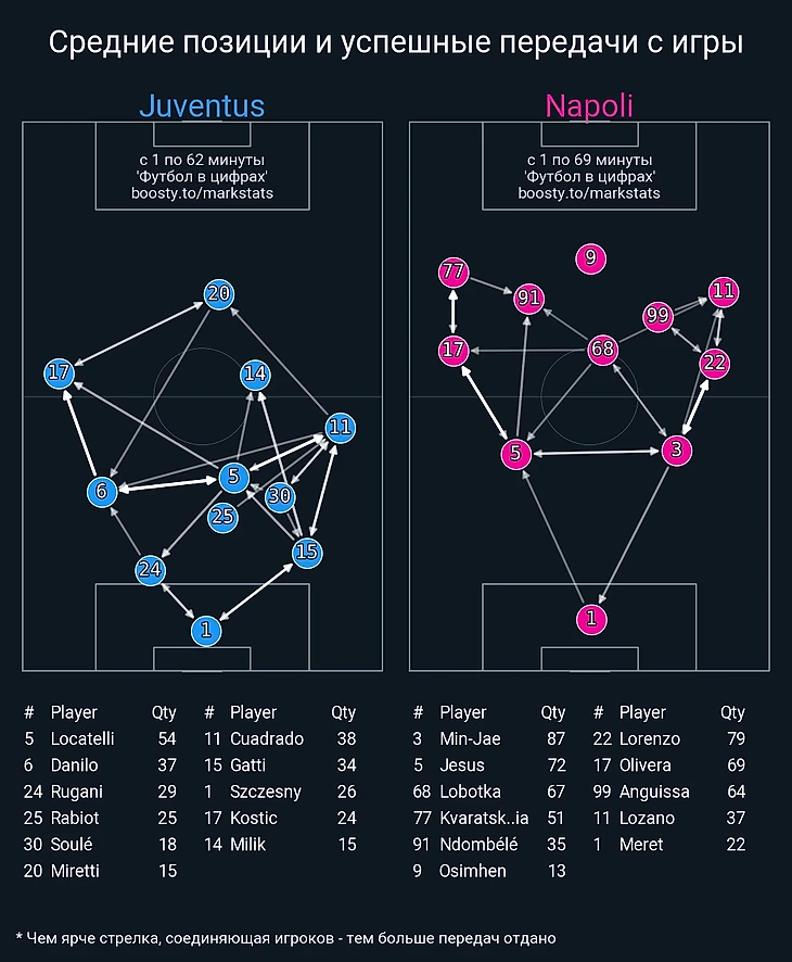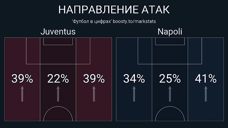 Активность Замбо-Ангисса, помноженная на невыразительные действия Ндомбеле на левом фланге, помогла сместить акцент на правый коридор. Цифры это подтверждают: неаполитанцы на 7% чаще использовали именно эту бровку в развитии атак.