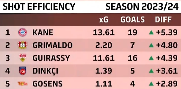 «Штутгарт» к матчу против «Баварии» подошёл в статусе лидера Бундеслиги по ожидаемым очкам: xPts «швабов» был почти эквивалентен реальному (32 против 31), как, впрочем, и баварский (31,7 против 32). Однако «Байер», согласно данным метрики, при таких раскладах должен был выпадать из битвы за пальму первенства: xvalue оценил старания «леверкузенцев» лишь на 28,4 поинта, хотя на деле банда Алонсо к середине декабря имела в копилке уже 36 баллов.