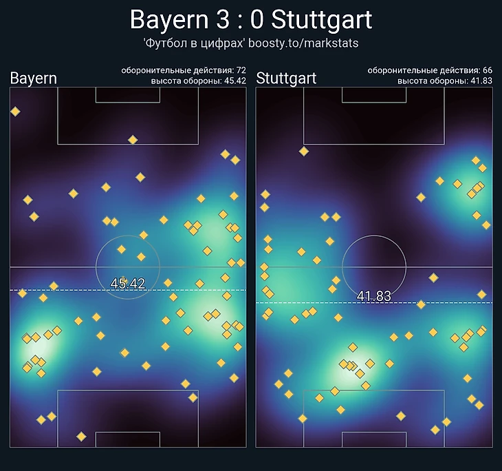 Позиционная оборона «Баварии» – самая убедительная в этом сезоне. Конратаки, державшиеся зачастую лишь на одном Сане, всё равно одни из лучших за четыре месяца. Невероятная реализация стандартов (даже за вычетом первого гола Кима) и отличная компоновка игроков при подачах.