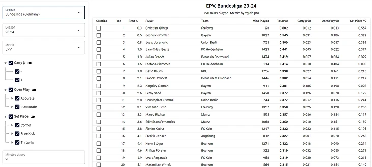 Во-первых, отмечаем выходящие за рамки человеческого восприятия цифры Алекса на корнерах – сумасшедшие 0.797 и 0.748. Общий EPV, не имеющий аналогов в этом сезоне, составил 1.674. Для сравнения посмотрите на топовые показатели этого сезона.