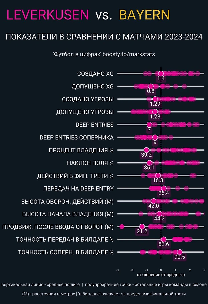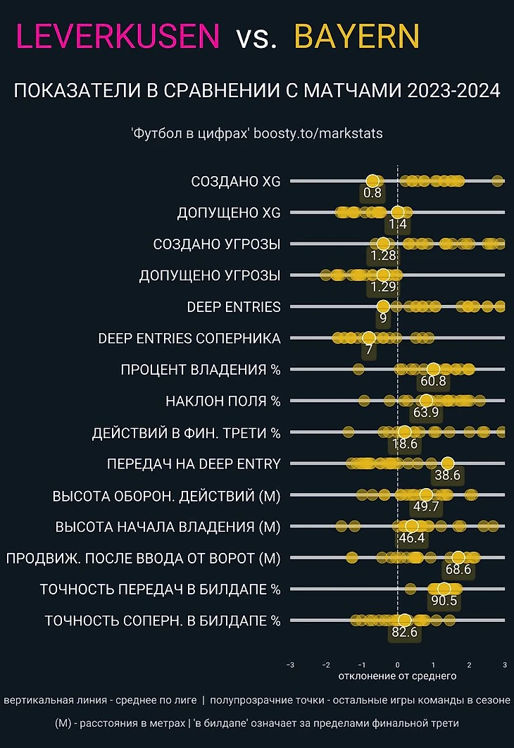 Ярче всего игровая импотенция гостей проявилась не только в атакующем креативе, но и в позиционной игре. Обратите внимание на показатель Deep Entries «Байера»...