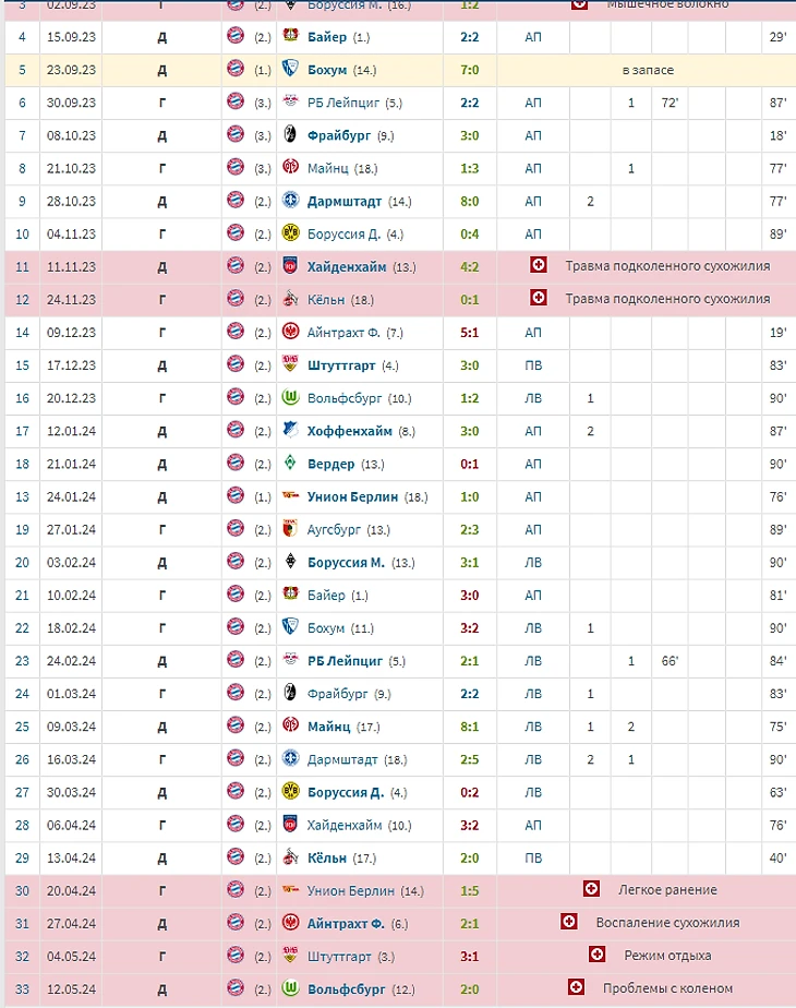 Первая из них – тайминги. Де Лигт травмировался в конце сентября, а восстановился аккурат тогда, когда повреждение получил уже Упамекано (возможность сыграться отсутствовала). Далее «Бавария» выдает самый успешный свой отрезок в сезоне: осенне-зимний этап, по ходу которого Упамекано и Ким проявили свои лучшие качества в связке. В январе кореец отправился в сборную, а когда вернулся, картина была следующая: Дайо либо сидел на травмах, либо не играл из-за дисквалификаций, а Дайер с Де Лигтом уже начинали сыгрываться. Кроме того, Ким и сам испытывал проблемы – сказалась высокая нагрузка и смена локаций.