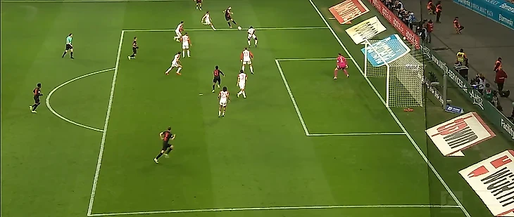 Именно на его совести первый пропущенный мяч: сначала защитник вовремя не выдернулся на набегающего Саку, а затем крайне нерасторопно выставил колено, даже не попытавшись выйти на контакт с ним.