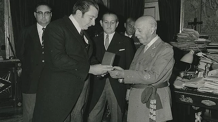 Факт №8 Бывший президент Барселоны Агусти Монталь наградил Франко золотой медалью, да того самого Франко который так любил Реал и так нещадно гнобил Барселону.