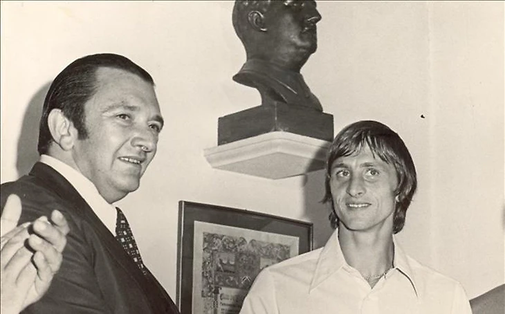 Кстати, этот же президент подписал Йохана Кройфа, обратите внимание на фоне чьего бюста он подписывал голландца: