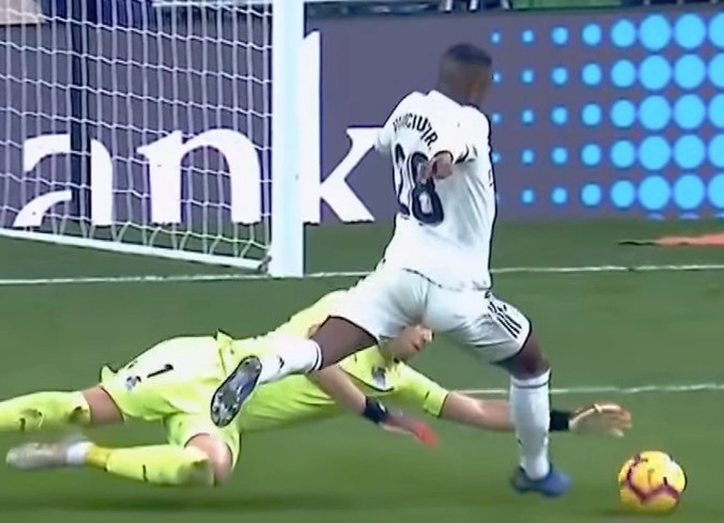 Я бы не стал так это расписывать, если бы такая же ситуация была у Реала. Однако нет. Судьи наоборот не замечают фолы на футболистах Реала, но замечают любой фол мадридцев. Конечно, это не главная проблема Реала. Но всё равно у команда и так ничего не получается, а ещё судьи угнетают. Например, вот в этом эпизоде пенальти не был поставлен, хотя касание ног Винисиуса было: