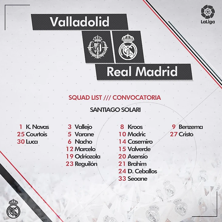 Недавние матчи отправили в лазарет сразу нескольких игроков основы «Реала». Травмы получили Винисиус и Лукас Васкес. Незначительное повреждение также у Гарета Бэйла. Именно поэтому в заявке на матч с «Вальядолидом» встречаются имена тех игроков, которые часто вообще остаются «за бортом».
