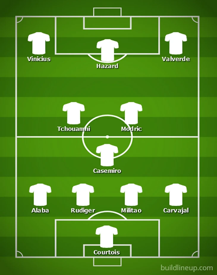 Теперь давайте посмотрим, как будет выглядеть наш состав с Азаром в его новой роли. Азар может делать рывки вперед и создавать пространство в последней трети Это также означает, что «Реал» вряд ли подпишет нового форварда. Проблема для Эдена заключается в том, что, вероятно, он будет просто подменой для Карима Бензема. То есть, выходить бельгиец в старте будет редко.