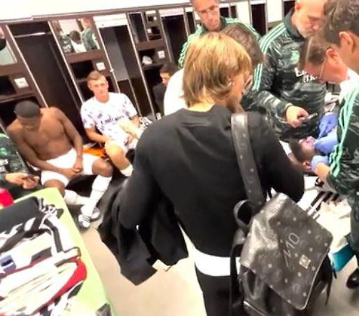 Рюдиегра увели в подтрибунку, положили на массажную койку и стали накладывать швы. Игроки «Мадрида» Давид Алаба и Тони Кроос сразу после матча не стали отдыхать, а пошли проверить состояние партнера.