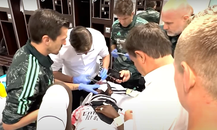 «Реал» выложил видео, как Рюдигеру накладывают швы после матча. Кроос и Алаба пришли поддержать немца – были с ним до последнего, в отличие от других