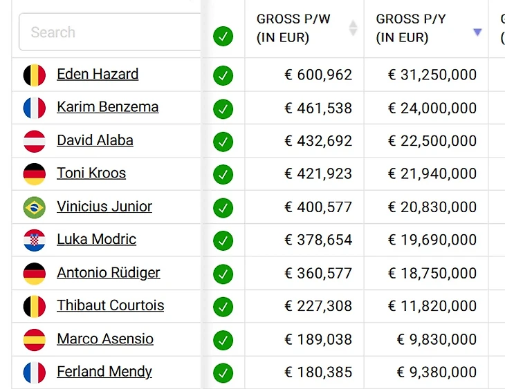 Тем не менее 31-футболист смог заработать 3,6 млн евро за последние шесть недель. Дело в том, что Эден Азар – самый высокооплачиваемый игрок «Реала»: его доход составляет 600 000 евро за неделю, сообщает Capology.