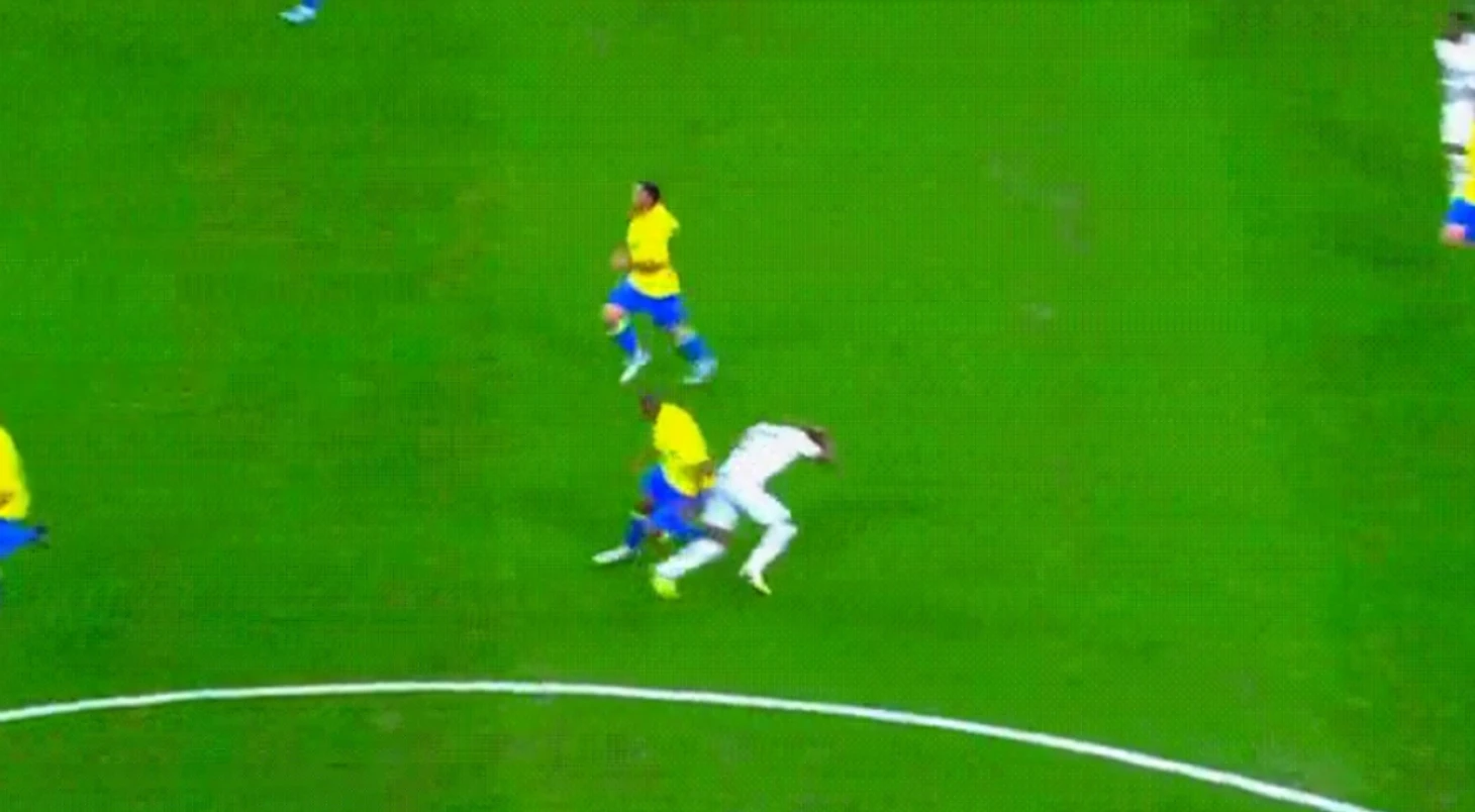 Мяч был у Федерико Вальверде, который пробил по воротам, но не попал. Когда игра была приостановлена, Винисиус побежал разбираться с Фали и за свои действия получил желтую карточку.