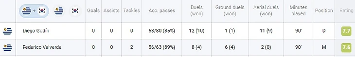 Главной звездой «чарруа» был Феде Вальверде, он и Диего Годин заработали наивысшие оценки за этот матч: