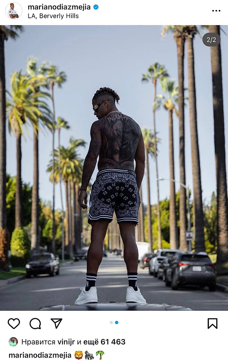 Пока другие игроки «Реала» бьются за Кубок мира, у Мариано отпуск: отдыхает в ЛА, фотографируется со львом и выкладывает в сторис гол «Барсе»