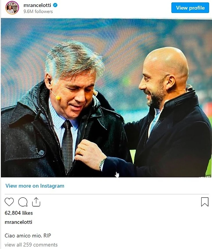 Карло Анчелотти попрощался с Джанлукой Виалли через социальные сети, выложив их совместную фотографию с подписью: