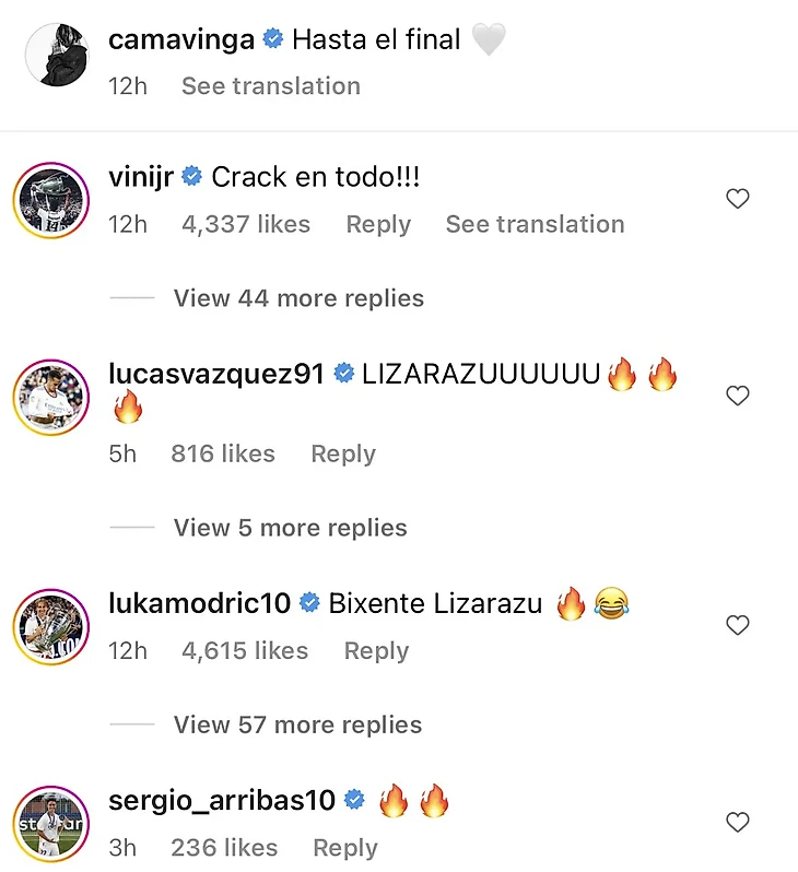 После победы над «Атлетико» (3:1) Эдуардо Камавинга поделился в своем аккаунте несколькими фотографиями. Это привлекло внимание Лукаса Васкеса и Луки Модрича. Оба сравнили француза с Биксантом Лизаразю.