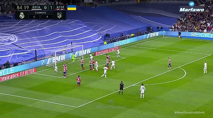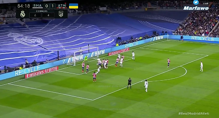 Модрич навесил в штрафную с углового, и Родригес высоко выпрыгнул перед ближней штангой и точно пробил головой под дальнюю. Невероятно!