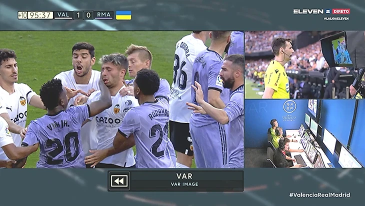 Матч «Мадрида» и «Валенсии» на «Месталье» был прерван практически на десять минут после того, как форвард «сливочных» Винисиус Жуниор услышал с трибун какое-то оскорбление, которое посчитал расистским. До этого весь матч бразилец конфликтовал с игроками хозяев и пытался добиться от главного судьи Рикардо де Бургос Бенгоэчеа желтой карточки.