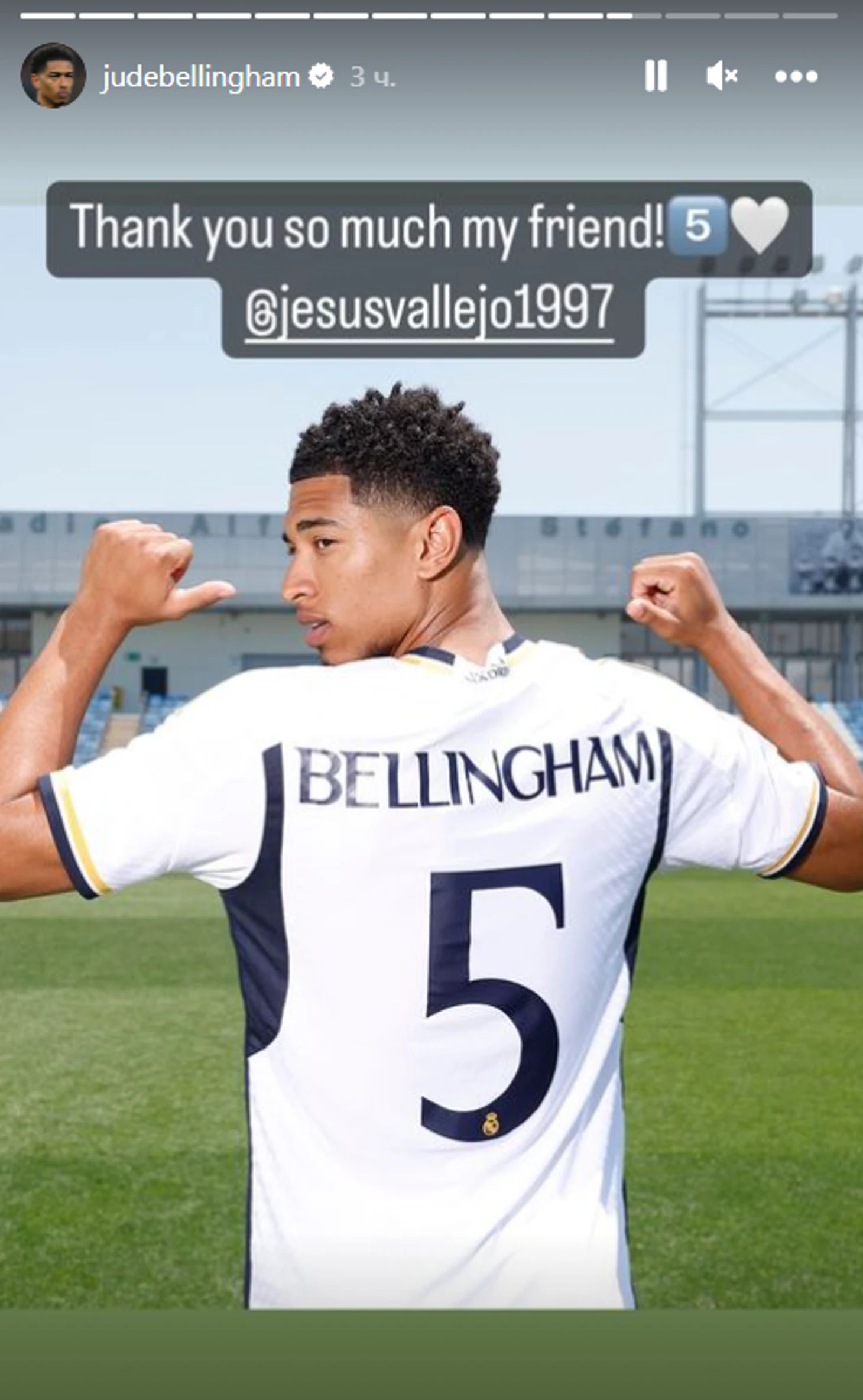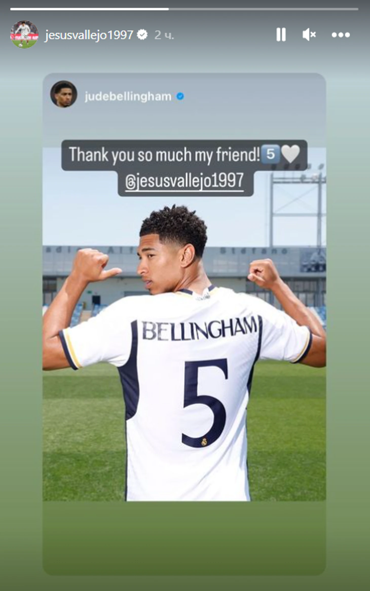 Хесус скромно репостнул публикацию Беллингема в свои соцсети.