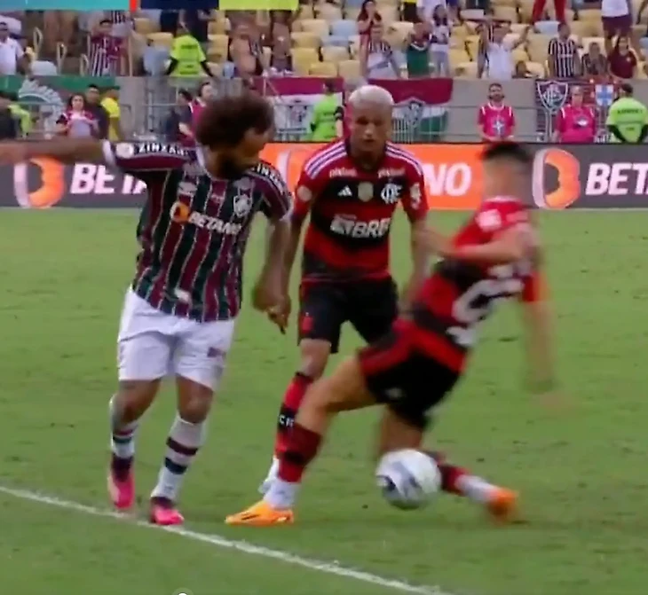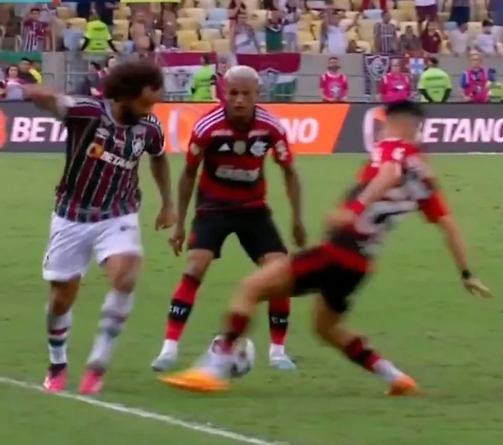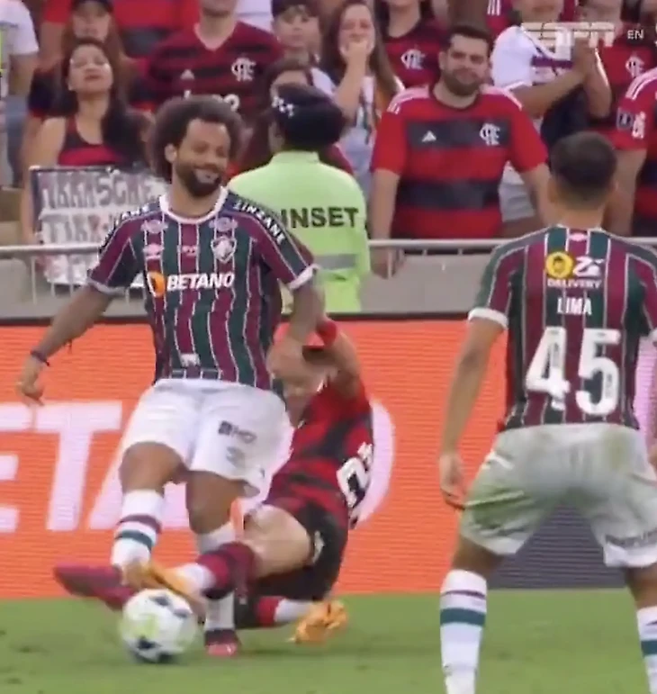 В воскресенье ночью команда Марсело играла против «Фламенго». Матч закончился нулевой ничьей, а бразилец в конце игры отметился тем, что пробросил мяч между ног полузащитнику Луису Араужо. Тот отомстил сразу: жестко въехал в ноги легенде «Мадрида». Судья прекрасно видел эпизод и достал красную карточку.