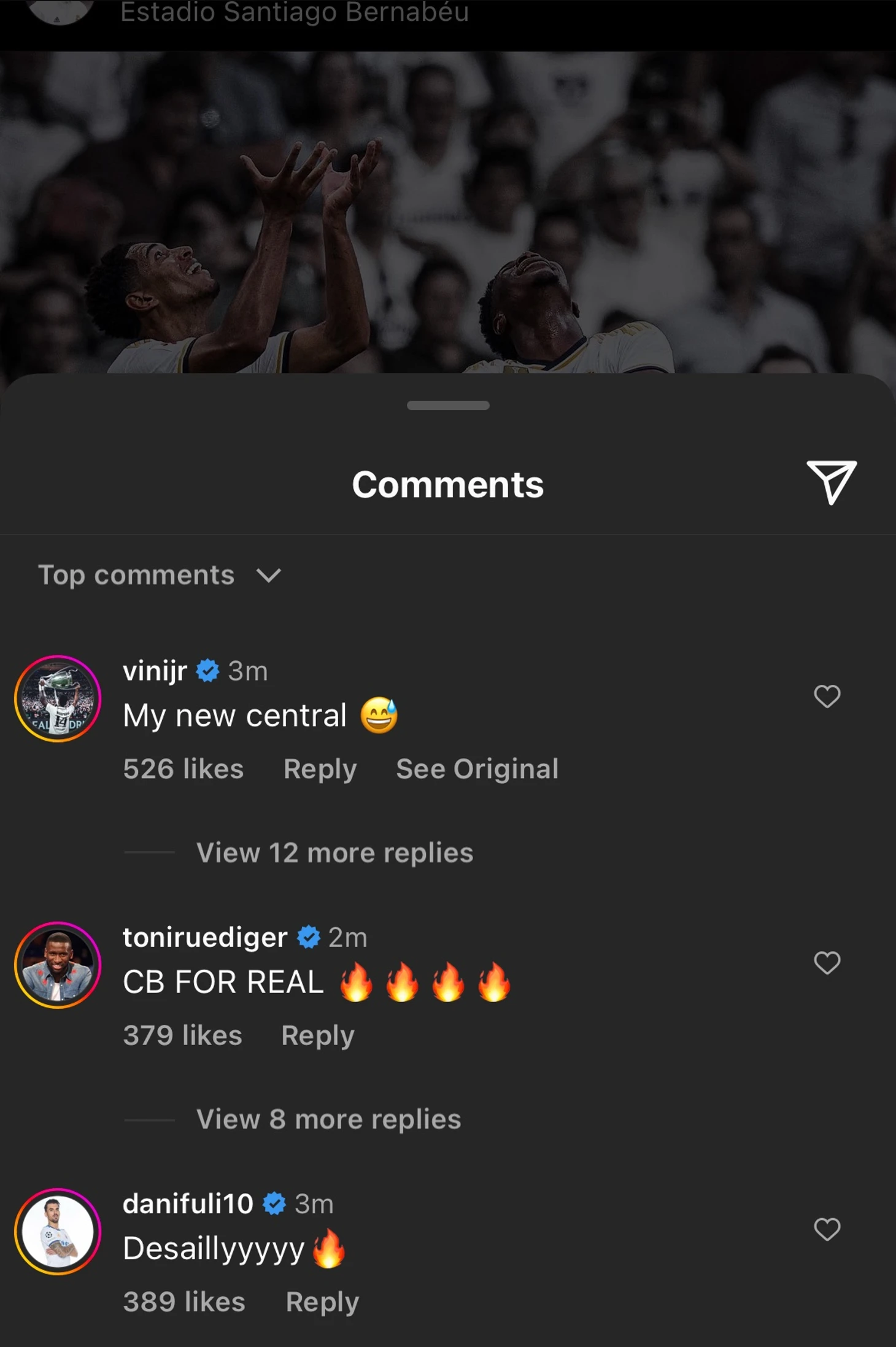 Судя по финальному счету, такая находчивость Орельена Тчуамени очень помогла ему. «Мадрид» сохранил ворота в неприкосновенности, а сам француз получил хорошие оценки и отзывы. Особенно расстарались партнеры по команде: Винисиус Жуниор назвал Орельена «мой новый центральный защитник», Антонио Рюдигер написал, что Тчуамени − «настоящий защитник», а Себальос просто добавил «Десайи».