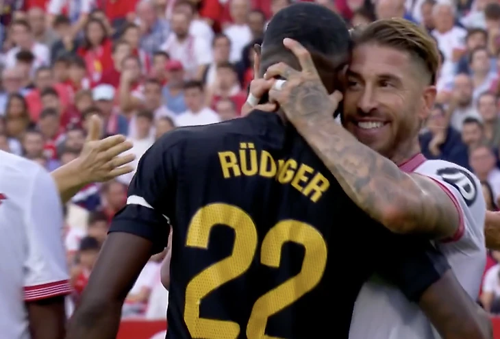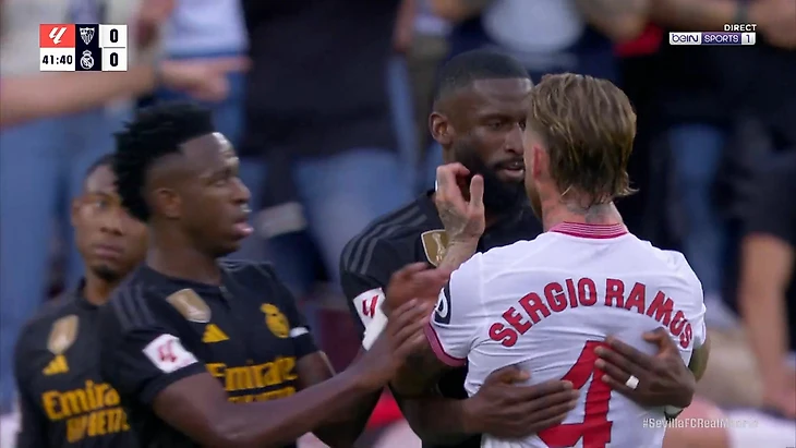 Казалось вполне ожидаемым, что в какой-то момент эмоциональные Рамос и Рюдигер столкнутся. Начиналось все вполне мирно – с объятий.