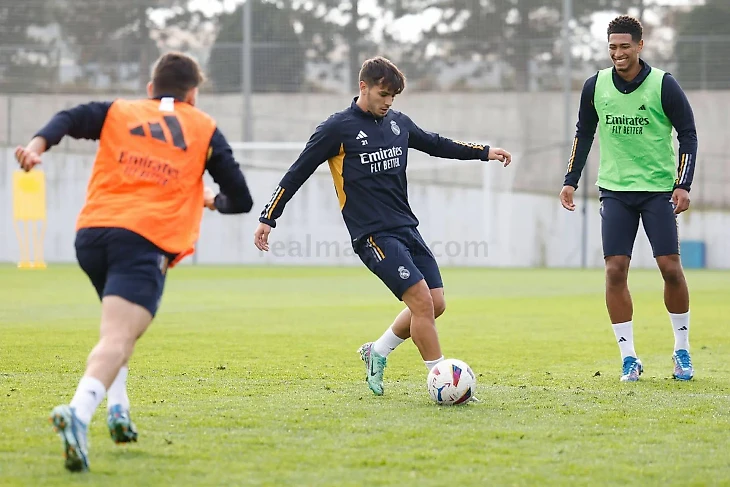 На последней тренировке «сливочных» были замечены Беллингем и Себальос. Парни провели часть тренировки на газоне вместе с одноклубниками. Кепа и Гюлер работали отдельно в спортзале.