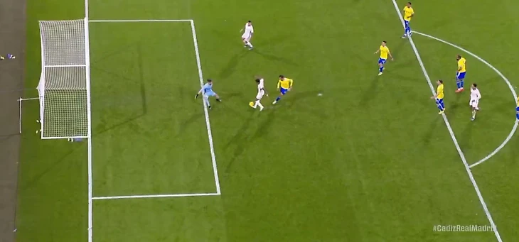 Родриго и Хоселу вышли 2-в-0, и бразилец передал мяч испанцу. По какой-то причине Хоселу остановился и не коснулся мяча, дав ему вылететь за пределы поля. Скорее всего, он подумал, что находится в офсайде, но это было не так.