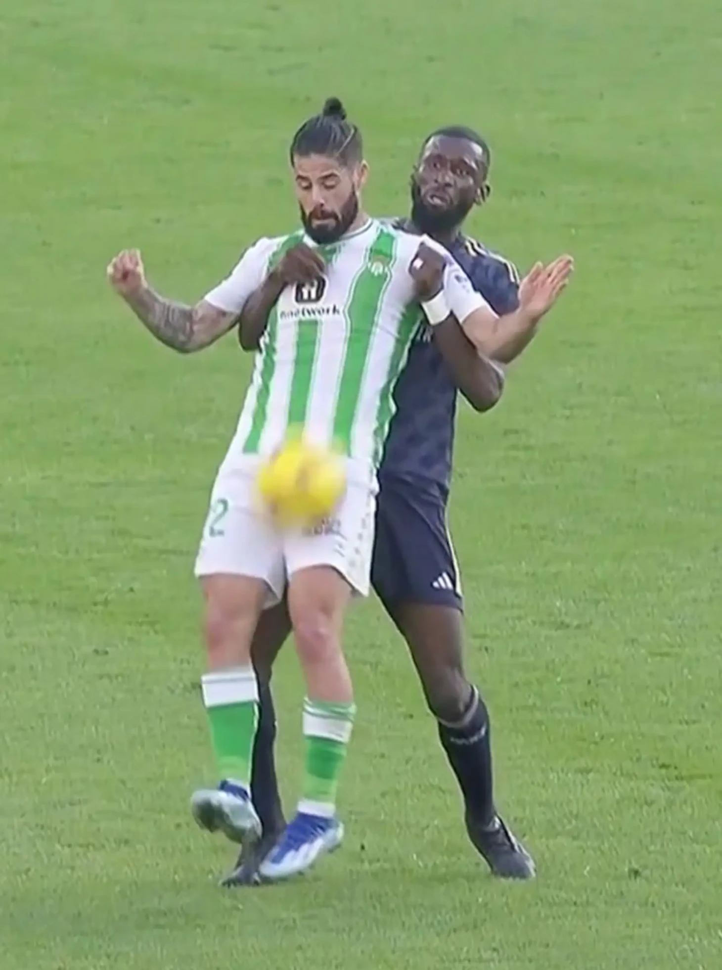 Однако против «Реала» пришлось нелегко, особенно в дуэли с Антонио Рюдигером. В какой-то момент немецкий защитник поднял Иско с земли и использовал его ноги... чтобы вывести мяч из игры.