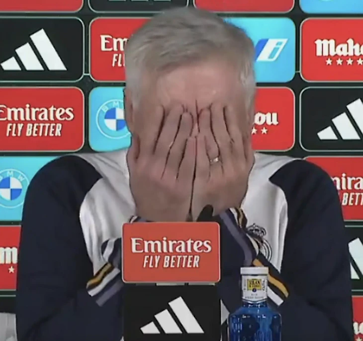 Анчелотти сильно рассмеялся и закрыл лицо руками.