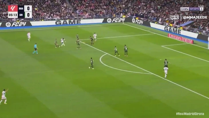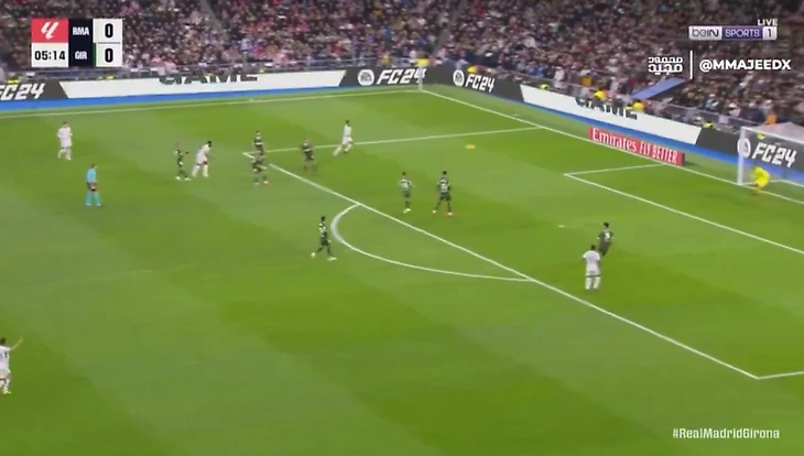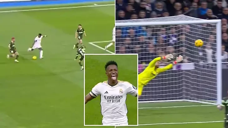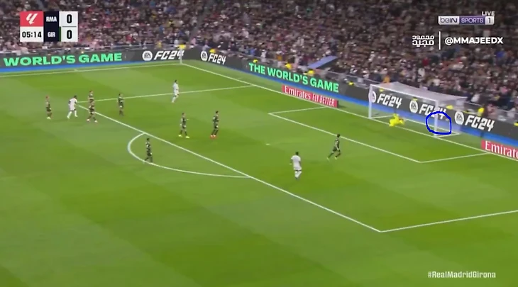 Один из игроков «Мадрида» отвлек защитников, которые среагировали на его забег, а Винисиус решился на дальний удар в дальний угол.
