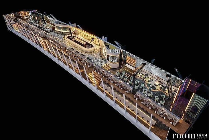 «Дизайн объединяет такие элементы, как характерные городские бары, освещение и архитектуру, с захватывающими, технологичными, динамичными и меняющимися пространствами».