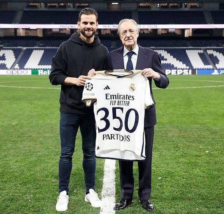 Начо, который проводит свой 14-й сезон в команде, по окончании игры получил памятную футболку из рук Флорентино Переса.